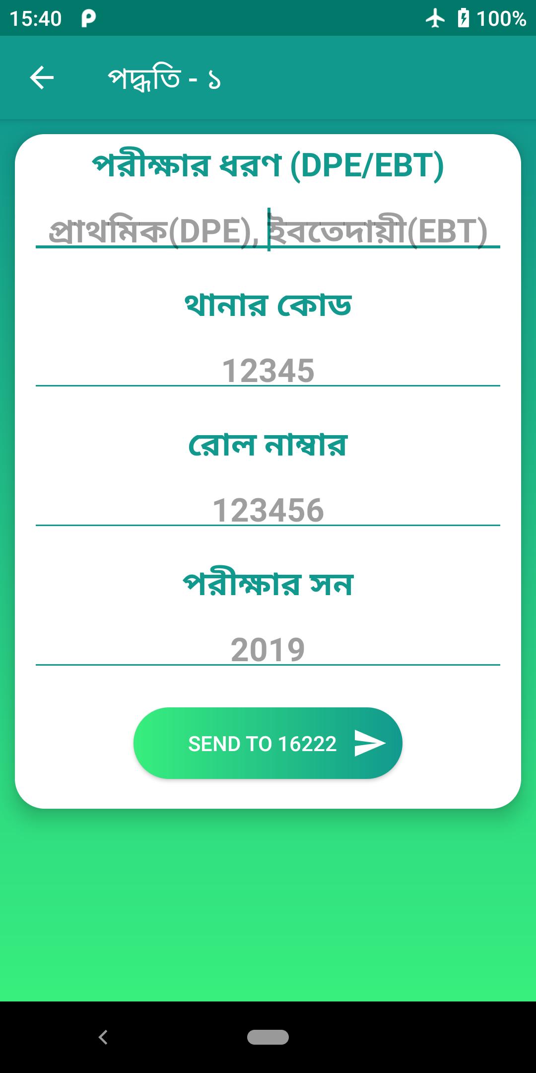 ২. SMS এর মাধ্যমেঃ- সেজন্য অ্যাপসের SMS অপশানে যেয়ে সকল তথ্য পূরণ করে সেন্ড করলে ফিরতি SMS এ রেজাল্ট পাওয়া যাবে।