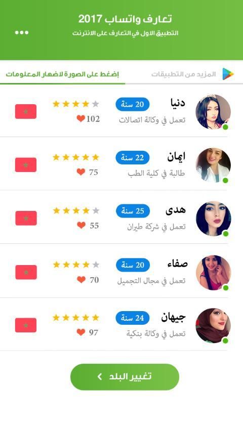 मोरक्को महिलाओं मोरक्को, लेबनान, सऊदी अरब, मिस्र, संयुक्त अरब अमीरात, जॉर्डन, कतर की बेटियों और सभी अरब देशों और शादी के लिए लड़कियों की फ़ोन नंबरों से संख्या के एक बड़े समूह के साथ डेटिंग के लिए आवेदन संख्या
