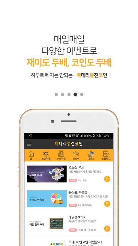 배터리 충전만 해도 적립이 되는 신개념 리워드 앱 "빠데리 충전 코인"!!