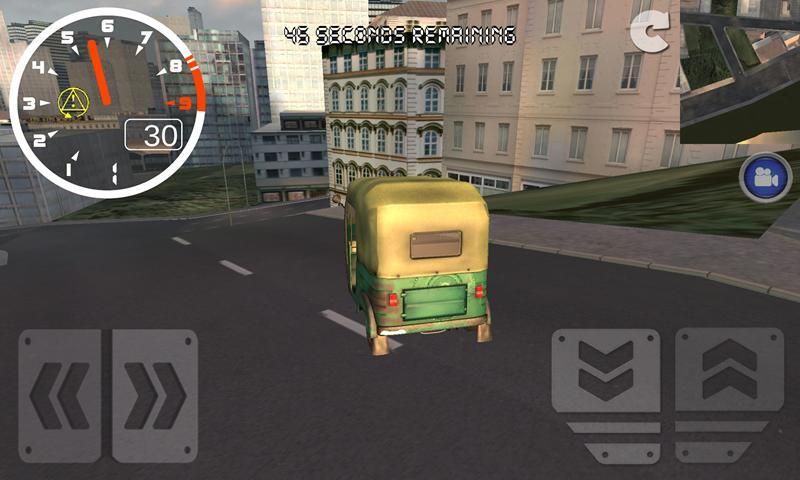 Try to get the TUK TUK to drift or just drive as fast as you like, but be careful not to roll this three wheeled taxi on its side. If you do crash, don't worry a quick reset will have your TUK TUK Rikshaw all shinny and new again.... Well not really shinny or new, but the dents will be repaired. Ready for you to smash it up again. Don't forget to use the different camera angles to give you either the real behind the wheel feeling or a cool view.