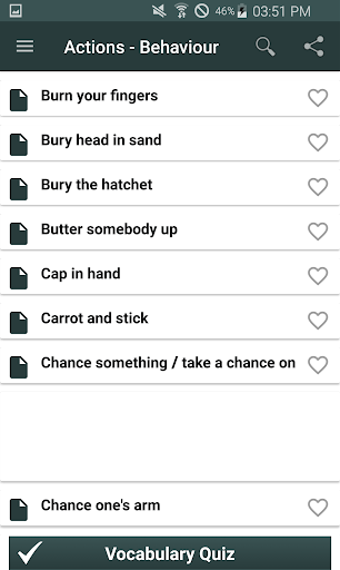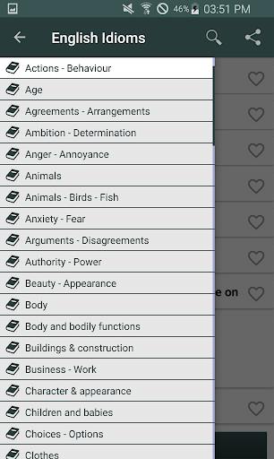 अंग्रेजी शिक्षार्थियों के लिए एक नि: शुल्क ऐप आपको अंग्रेजी में मुहावरे, वाक्यांशों और नीतियों को बहुत आसानी से और प्रभावी ढंग से सीख सकता है। कृपया इसका आनंद लें।