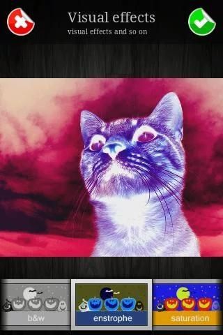 Add photo effects, use filters; add funny objects, fonts and frames. Share via Facebook, e-mail.