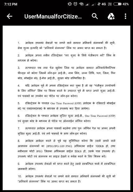 At present 20 services are available on mobile which will increase to 140 very soon. The major services available on app are as below
