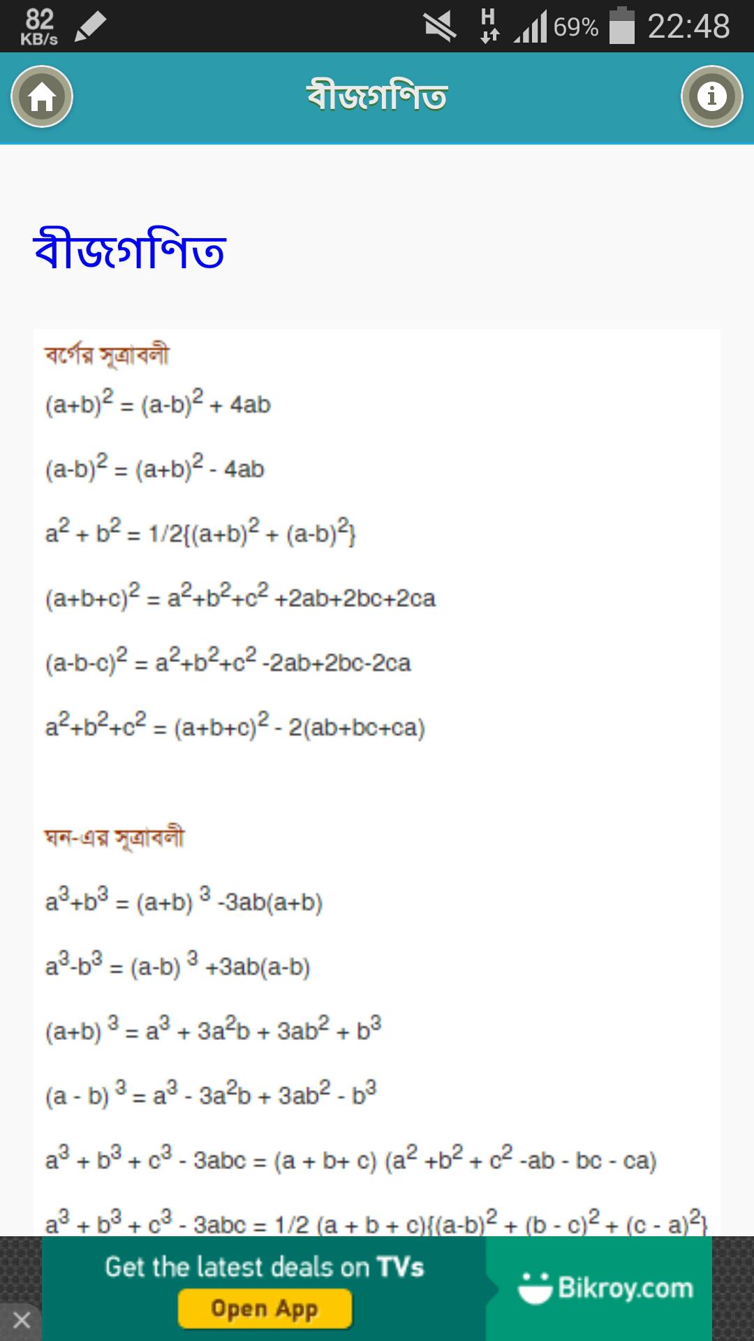 আমরা যার গণিতে ছাত্র বা বিজ্ঞান বিভাগের ছাত্র তারা অংক করার সময অনেক ঝামেলা পড়েতে হয় যেমন সূত্র মনে থাকেনা তাদের কথা চিন্তা করে গণিতের সূত্রের বাংলা এপস্ টি বানানো হয়।