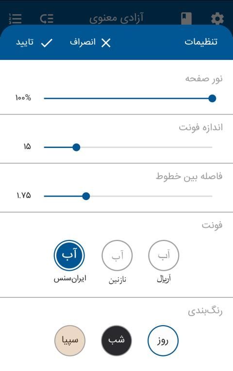امکان تغییر فونت و اندازه متن و فاصله بین خطوط