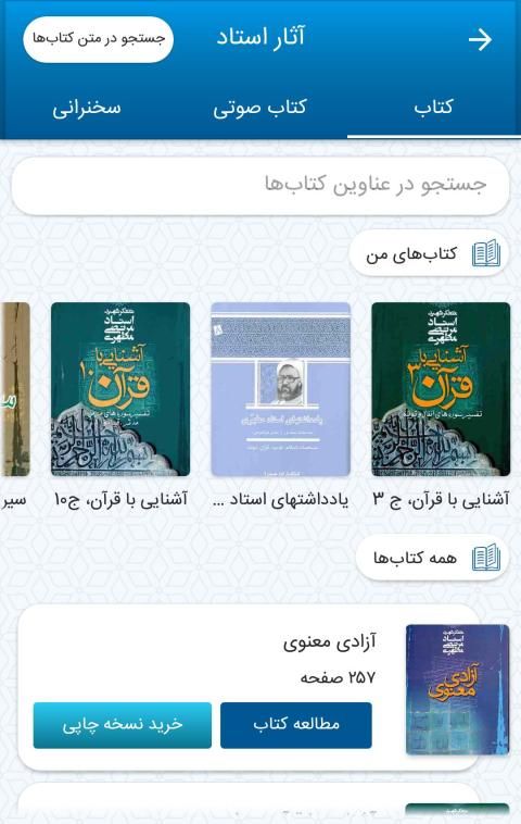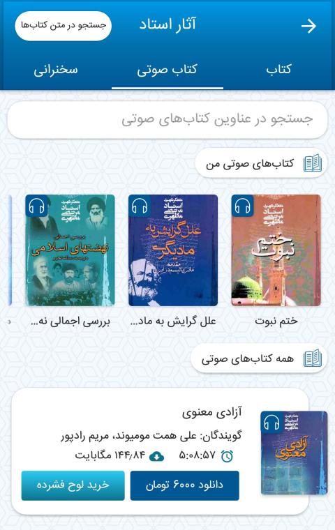 دسترسی به فایل صوتی (سخنرانی استاد یا کتاب صوتی) مرتبط با هر کتاب