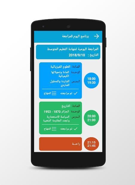 التذكير بالمراجعة والتحضيرالمنزلي للبيام هو تطبيق بسيط يتيح لكل مقبل على شهادة التعليم المتوسط 2019 جدول توقيت منزلي للمراجعة والتحضير لشهادة التعليم المتوسط خارج أوقات الدراسة وفق خطة ومنهجية لكل تلاميذ السنة الرابعة متوسط