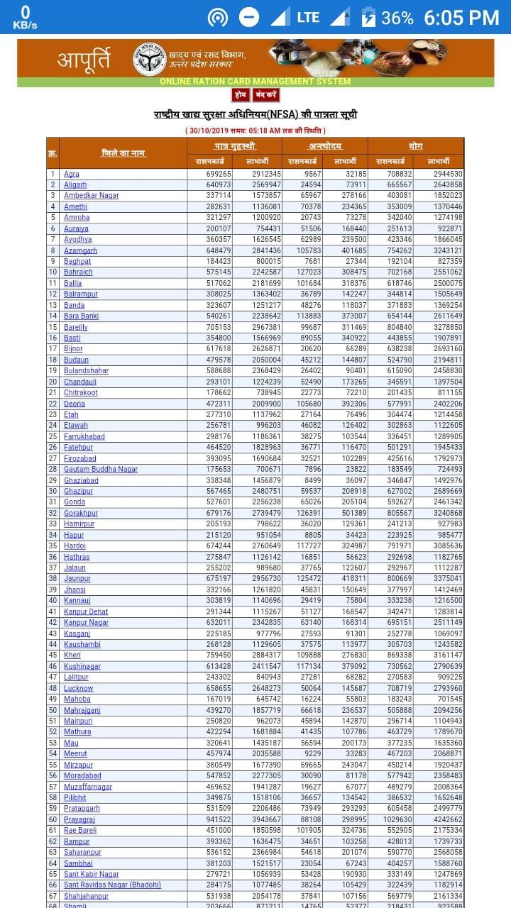 अद्यतन उत्तर प्रदेश राशन कार्ड लिस्ट,UP Ration Card List, 1.0.26