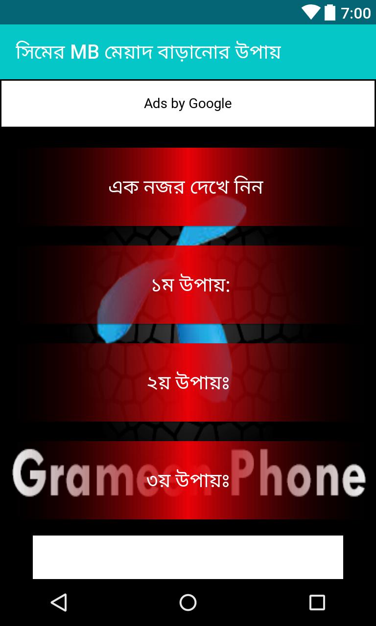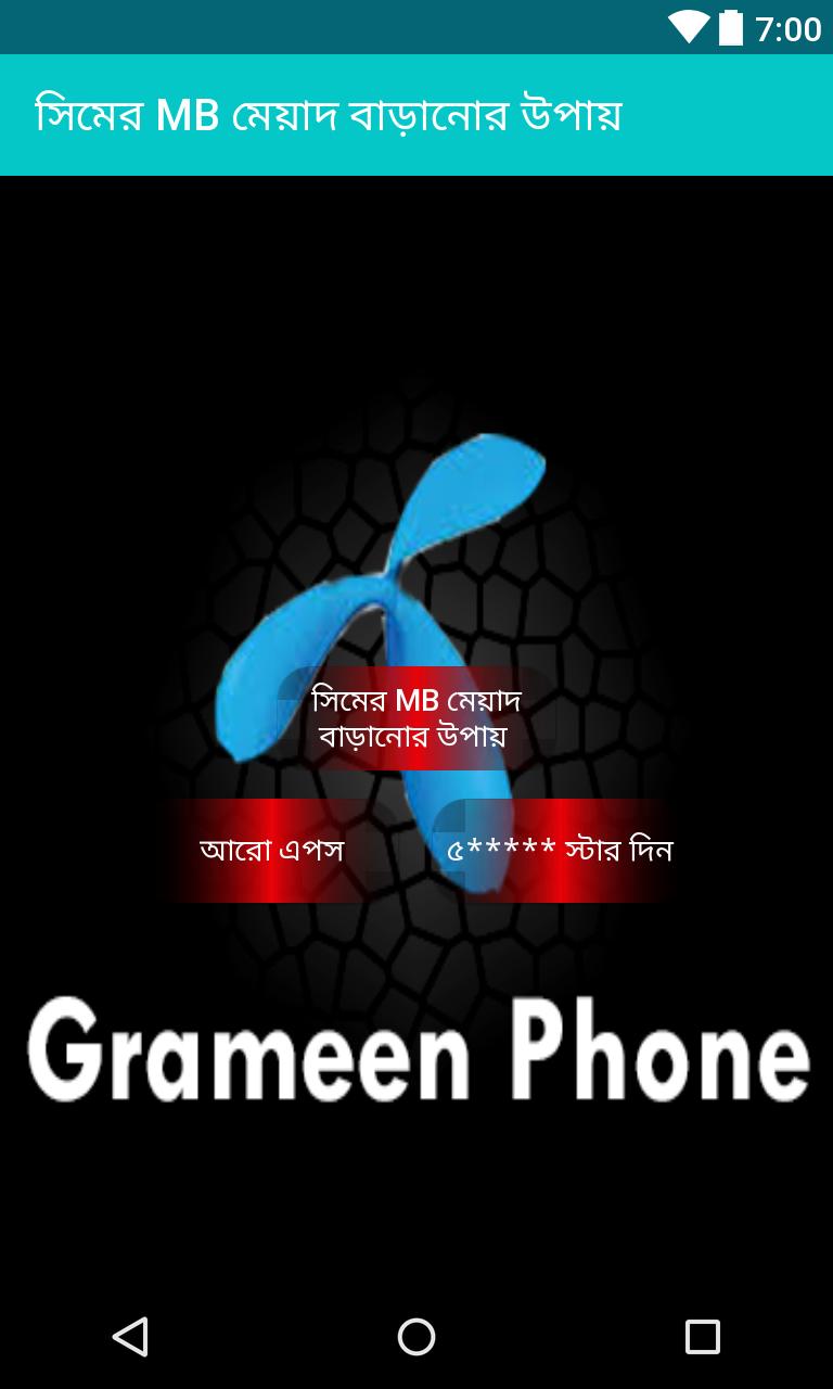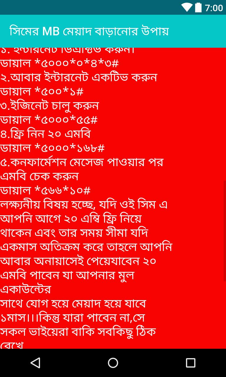 সিমের এমবি মেয়াদ বাড়ানোর উপায় জানতে পারবেন আমাদের এই অ্যাপটির মাধ্যমে। আপনার এমবি বেশি থাকলে আপনি ফ্রি কল করতে পারবেন। সাথে আমাদের ফ্রি ইন্টারনেট ব্যবহার করার টিপস নিয়ে আরো অ্যাপ রয়েছে। এমবি বাড়রো খুবই সহজ যদি আপনি টিপস সমূহ জানেন। ফ্রি এমবি পান আর ইন্টারনেট ব্যবহার করেন ইচ্ছামত।