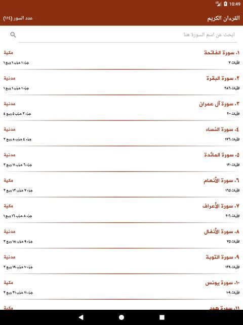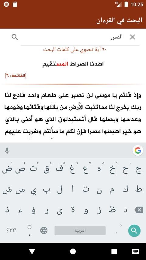 كما يحتوي على خاصية البحث في القرءان الكريم، وحفظ الآيات في المفضلة، ومشاركة التفاسير والتراجم والإعراب، وتكرار الآيات مما يساعد على الحفظ.