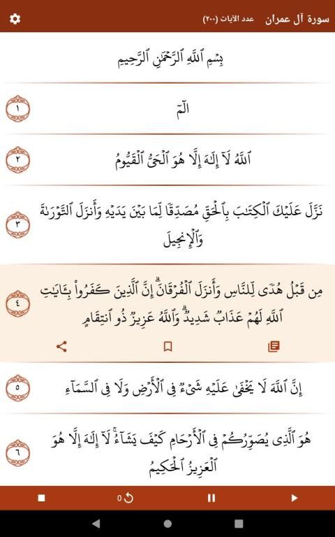 فالتطبيق يحتوي على: المصحف الشريف، التفسير المُيسر، وتفسير السعدي، وإعراب القرءان الكريم، وترجمة باللغة الإنجليزية، وتلاوات متعددة لكبار الشيوخ كل آية على حدى.