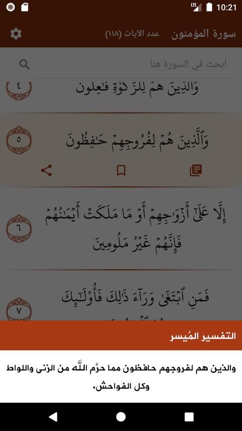 इसमें पवित्र कुरआन में खोज की सुविधा, पसंदीदा छंदों को याद करना, व्याख्याओं, अनुवादों और अभिव्यक्तियों को साझा करना और छंदों को दोहराना शामिल है, जो याद रखने में मदद करता है।
