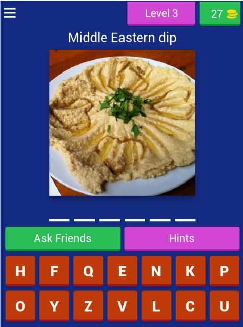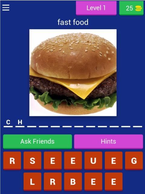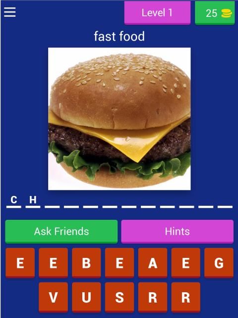 A challenging and educational word game (Food Quiz Game) with 80+ levels.
