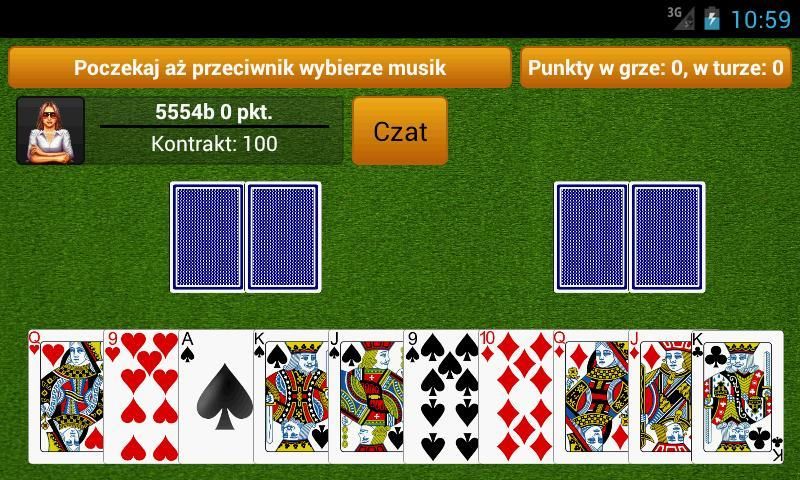 - poniżej statusu są ikony graczy, ich nazwy, punktacje, kontrakty oraz przycisk czasu (jeśli jest czerwony, świadczy o nieodczytanej wiadomości)