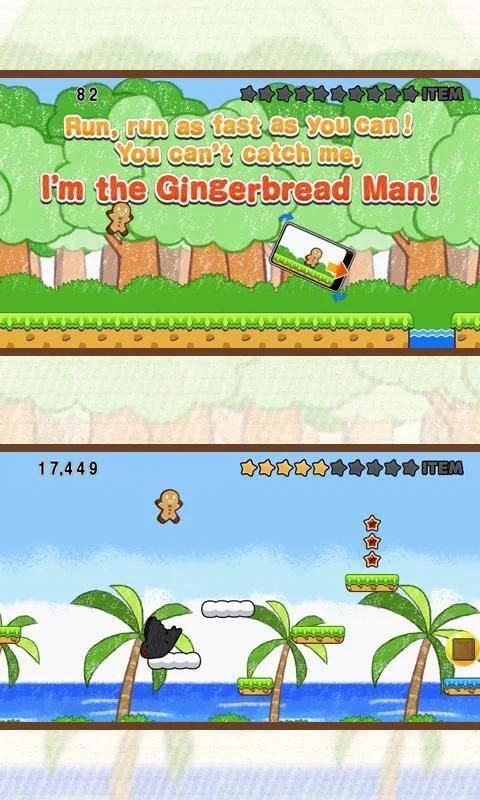 जब खेल, बिजली आइटम है कि अपने अंधेरे भाग्य से जिंजरब्रेड आदमी की उड़ान की सहायता करेंगे प्रकट करने के लिए सितारों इकट्ठा.