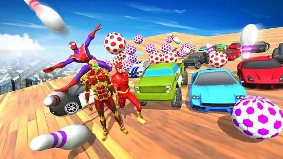 This year the superheroes have decided to hold a car racing championship on mega ramp for displaying stunt car racing! It tests your ramp stunts in competition with other superheroes through driving simulator on mega impossible race tracks. This is a challenge from superheroes to you; prove to them who the best stunt car rider is!