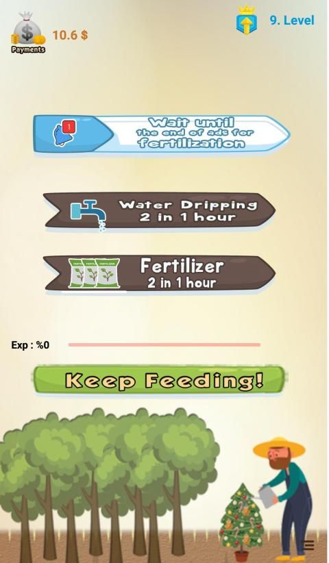 Are you a good farmer? Earn exp by watering your tree. Earn exp in addition to giving fertilizer.