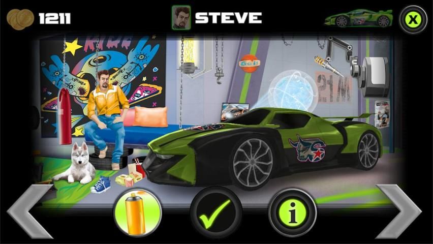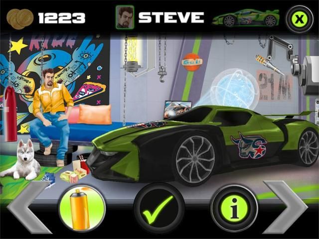 • 4 रेसर्स (मिक, एलेक्स, स्टीव, बेन) से चुनने के लिए