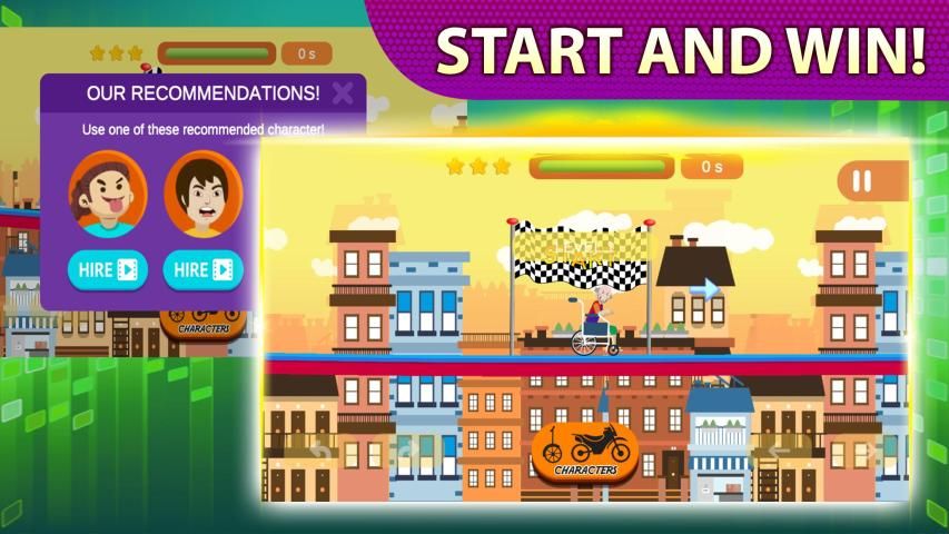 - 20+ characters facing sick tracks and deadly obstacles !. You get behind the wheel of a car, bike, motorcycle, tractor, scooter, and even spaceship!