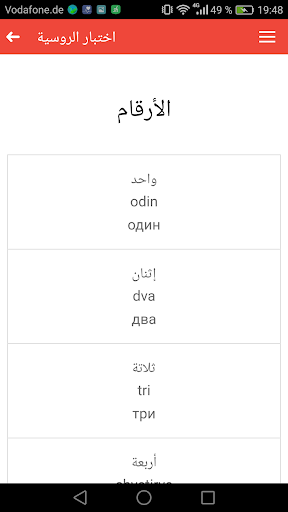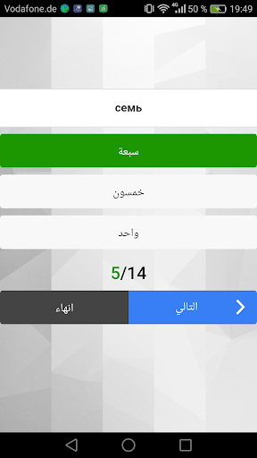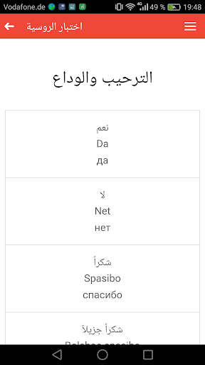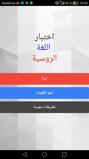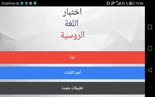 التطبيق يحتوي على اختبار في اللغة الروسية حيث يتم امتحان مدى اتقانك للقواعد و الكلمات