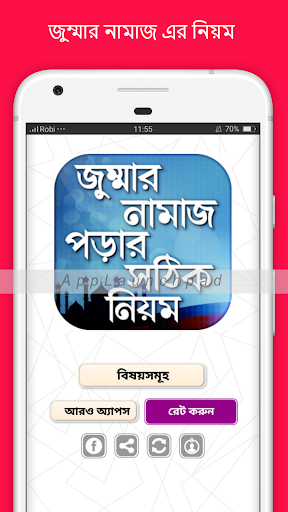 জুম্মার নামাজ শিক্ষা নিয়ে আমাদের আজকের বাংলা অ্যাপ টিতে আপনাকে স্বাগতম।ইতিপূর্বে আমরা নামাজ শিক্ষা সহ ইসলামিক বেশ কিছু অ্যাপ নিয়ে কাজ করেছি এবং সবার কাছ থেকে পেয়েছি ইতিবাচক সাড়া। জুম্মা বার হচ্ছে সকল মুসলমান দের একটি বিশেষ দিন।জুম্মা বার বা শুক্রবার সকল মুসলমান দের প্রধান লক্ষ্য থাকে সবার সাথে ঐক্যবদ্ধ হয়ে নামাজ আদায় করা। এর মাধ্যমে পারস্পরিক ভ্রাতৃত্ববোধ এর পাশাপাশি সামাজিক ও ধর্মীয় মূল্যবোধ ও বৃদ্ধি পায়।আমাদের অ্যাপ টি প্রথমত জুম্মার নামাজ শিক্ষা,শুক্রবারের জুম্মার নামাজ কয় রাকাত,মেয়েদের জুম্মার নামাজের নিয়ম,জুম্মার নামাজের হাদিস,জুম্মার নামাজ মোট কয় রাকাত,জুমার নামাজের নিয়ত সমূহ ও জুম্মার নামাজ না পড়লে কি হয় বিস্তারিত আলোচনা ও সেই সাথে ঈদের নামাজ সহ জানাজার নামাজ শিক্ষা সহ আলোচনা করা হয়েছে।