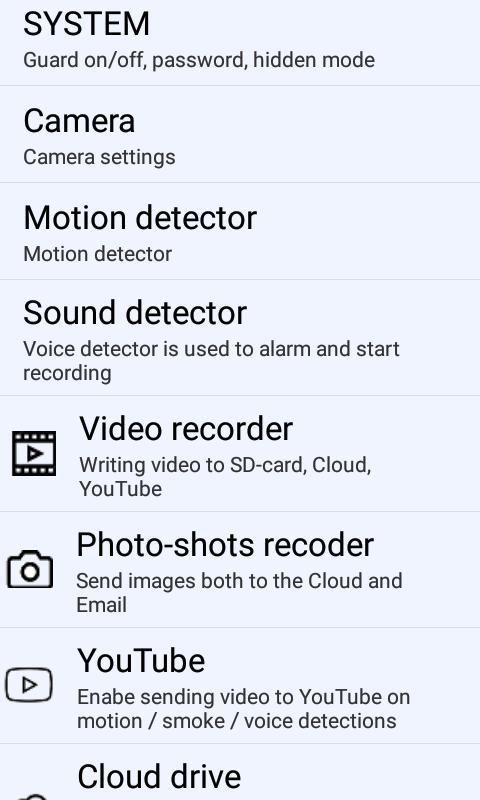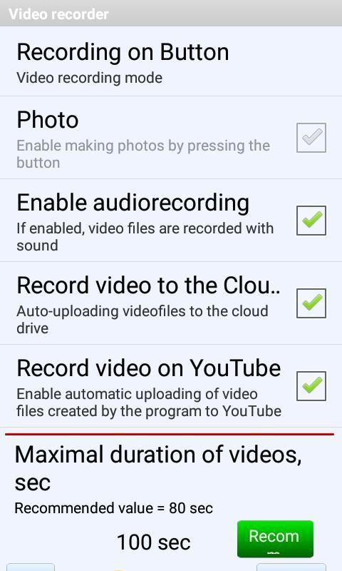 1) Videos. To start video recording you need press big button in the left top side of the screen.