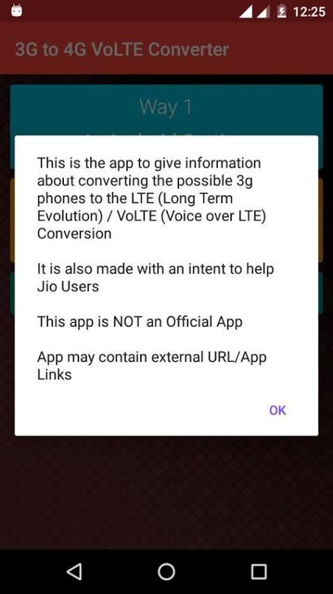 Aplikasi ini digunakan untuk mengkonversi atau menambahkan dukungan dari VoLTE / LTE ke Perangkat 3G Anda dan untuk Telepon 3G untuk mengkonversi ke mode 4G Telepon, aplikasi ini juga digunakan untuk membantu Jio Pengguna.