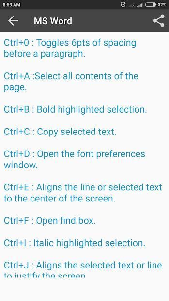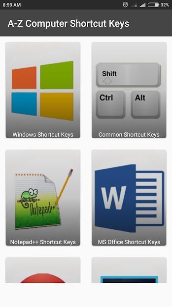 Aplikasi ini berisi semua tombol pintas komputer yang berguna dari aplikasi populer.