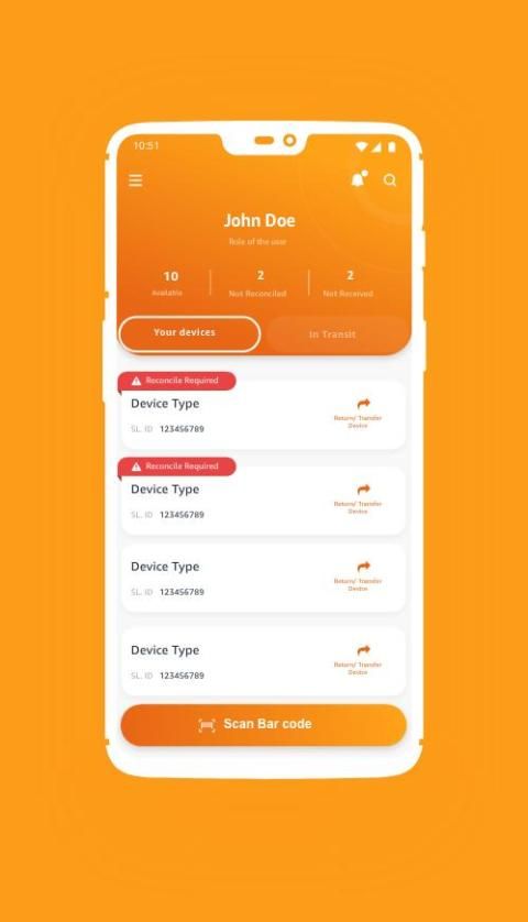 Aset ini perlu dilacak dan dicatat pada aplikasi yang akan membantu tim pusat memantau pergerakan aset dengan melakukan transfer aset secara langsung dan mencatat informasi tentang aset dengan memindai kode batang, yang akan menjadi pengidentifikasi unik untuk perangkat khusus itu, dan memperbarui proses serah terima.