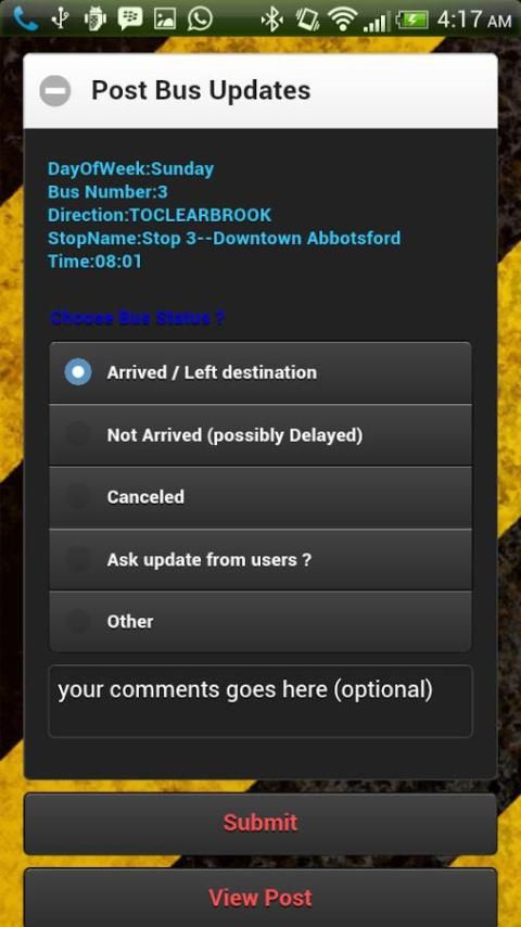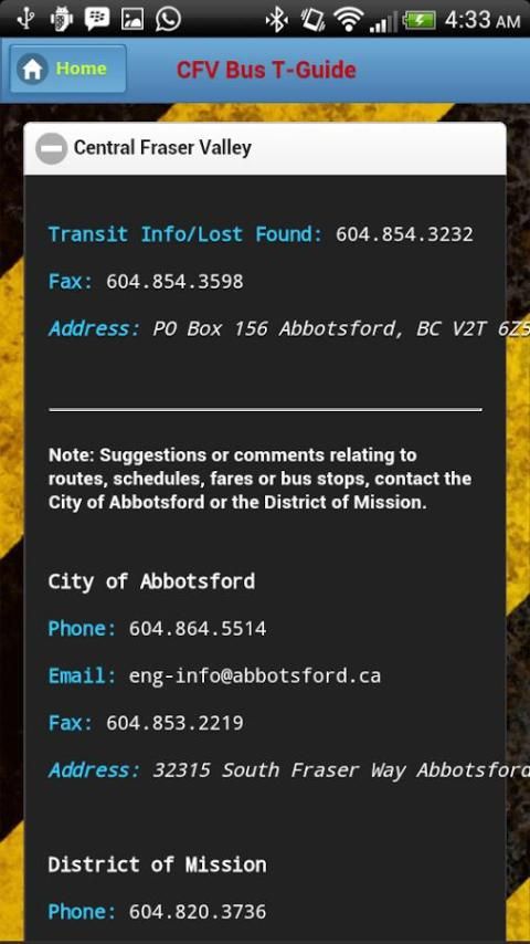Aplikasi Abbotsford BC Bus Transit membantu menemukan waktu bus untuk kota Abbotsford dan Misi di British Columbia. Lihat rute transit di peta dan menemukan timing bus dengan paling sedikit klik. Aplikasi ini memiliki fitur khusus yang memungkinkan pengguna untuk mengirim atau melihat update tentang bus real time ketika dalam perjalanan. Ini merupakan strategi alternatif untuk pelacakan GPS.