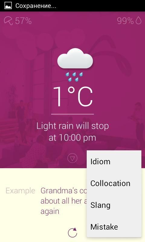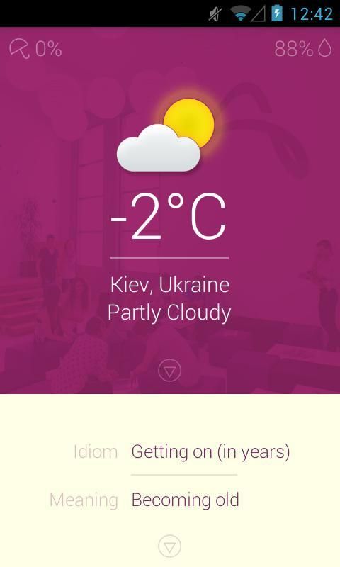 Check weather in a nice stylish way, and learn new English idioms everyday. Tons of new English Idioms will allow you to increase English vocabulary and to become more fluent in English language. Start learn English today.