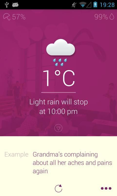 - Cuaca mendukung geo-posisi, mengambil kondisi cuaca terbaru untuk lokasi Anda saat ini