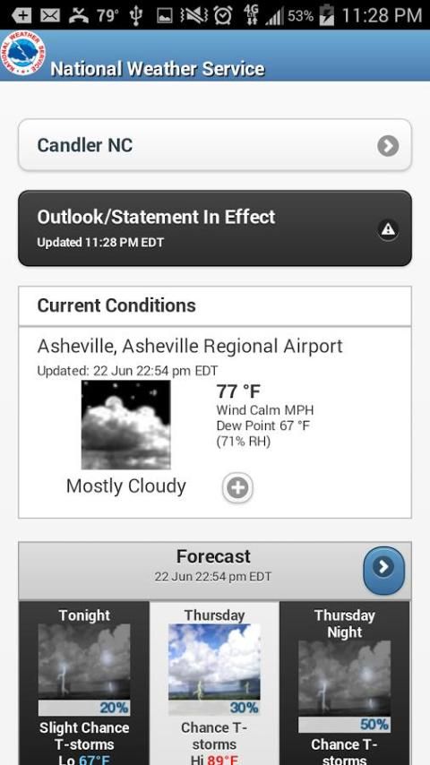 Aplikasi ini akan memungkinkan Anda untuk melihat National Weather Service kondisi saat ini, perkiraan, radar, dan banyak lagi. Hal ini sederhana dengan desain. Aplikasi ini mengakses versi mobile dari situs Layanan Cuaca Nasional yang memungkinkan Anda untuk tetap up to date dengan semua ramalan cuaca terbaru dan kondisi. Terbaik dari semua, sama sekali tidak ada iklan dan itu benar-benar gratis! Apa yang kamu tunggu? Mengambilnya hari ini!