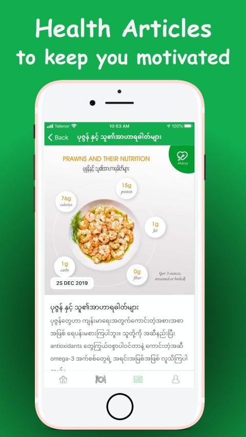ကျွန်မတို့ app ကနေ တဆင့် ကျန်းမာရေးနဲ့ညီညွတ်စွာ ဘယ်လိုစီမံချက်ပြုတ်စားသောက်ကြမလဲဆိုတာကို ရှာဖွေလေ့လာသုံးသပ်ပြီး မျှဝေပေးချင်ပါတယ်။ ဝိတ်တက်ဖို့ ဝိတ်ကျဖို့ သို့မဟုတ် ရေရှည်မှာ လူလည်းကျန်းမာ ကိုယ်ခန္ဓာလည်းတင့်တယ်လှပအောင် မည်သို့မည်ပုံ စီမံရွေးချယ်ပြီး ချက်ပြုတ်စားသောက်ကြမလဲဆိုတာကို