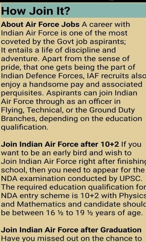 In this application also define the different different ways how you can join the Airforce according to requirements.