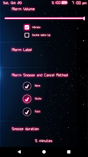 • Works alarm bahkan layar terkunci. Situs Anda tidak akan terlambat lagi karena Anda mengabaikan alarm. Situs Anda harus mengguncang perangkat Anda atau menyelesaikan masalah matematika untuk mengabaikan alarm.