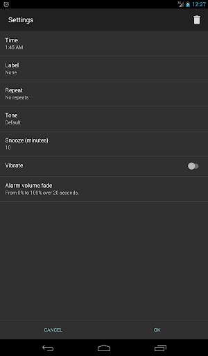 nama label untuk alarm Anda, pemilihan nada dari audio lokal Anda