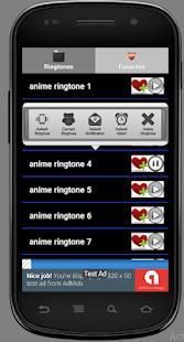 Setelah Anda menginstal Anime Ringtones, buka aplikasi ini, dan memilih judul sampai Menu muncul atau Anda dapat menekan "tombol play" untuk mendengarkan nada sebelum Anda berangkat.