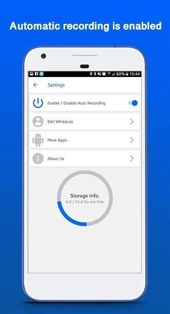 - Enable / Disable the automatic recording of calls (incoming and outgoing).
