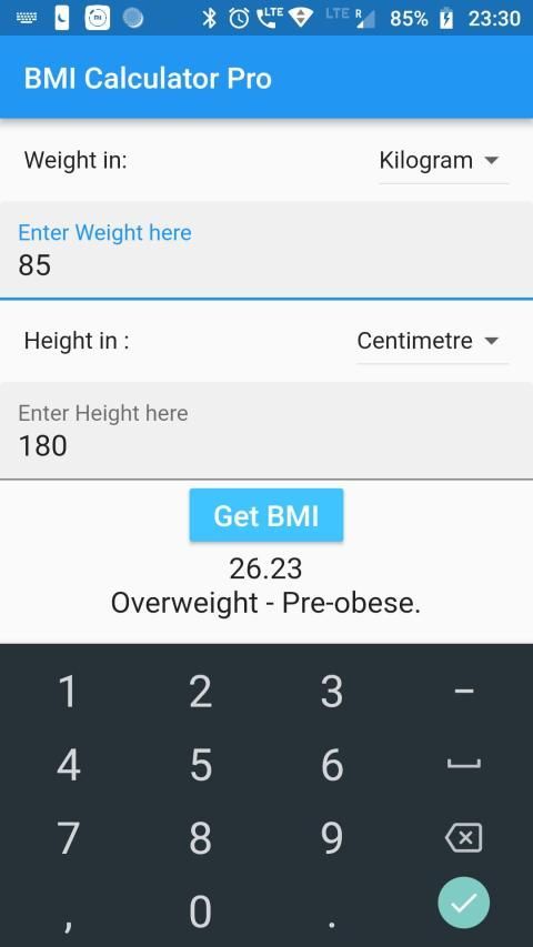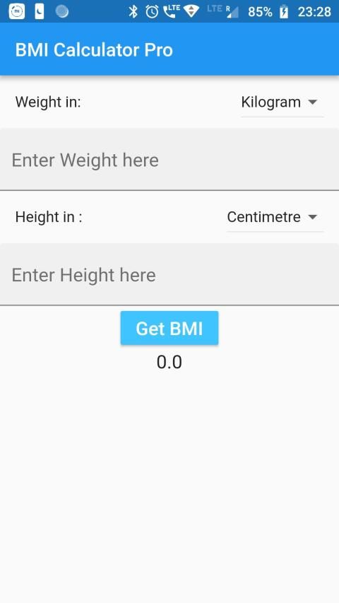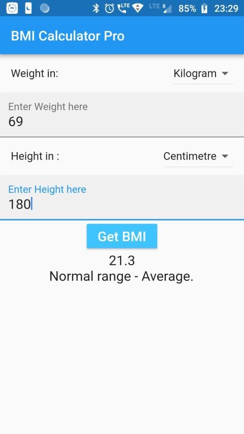 In this version you can find BMI easily by providing input of weight and height.