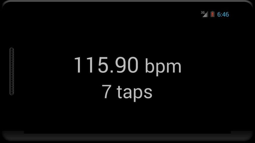 Tap anywhere on the screen every beat to obtain the beats per minute (BPM) of a song. Pause for 2 seconds to reset.