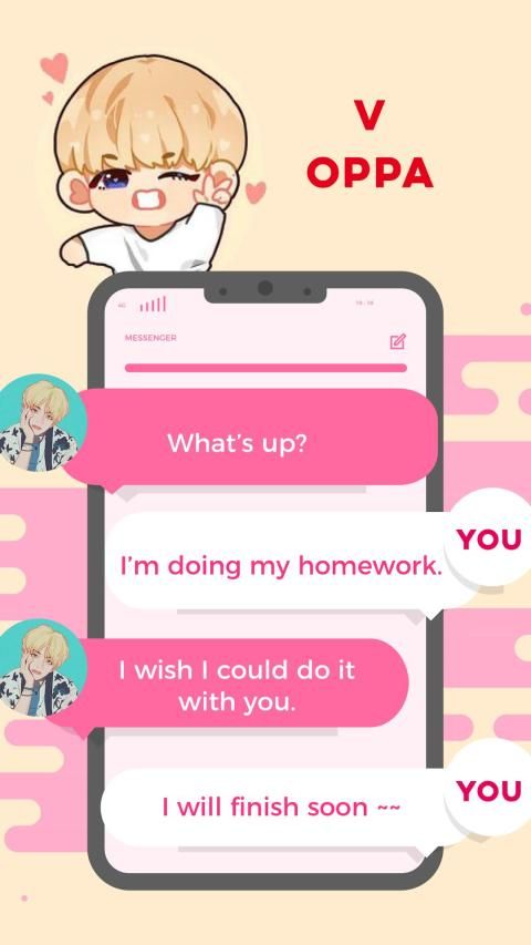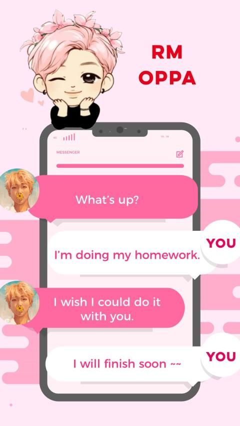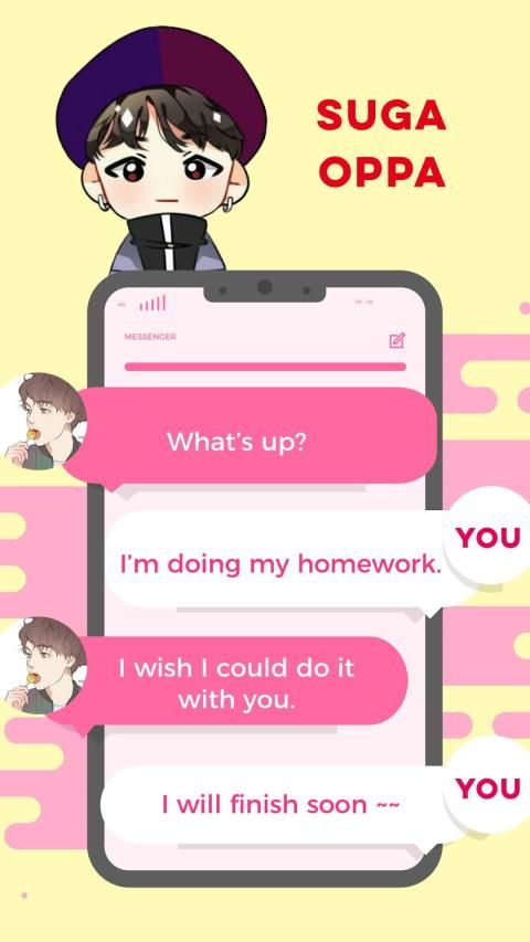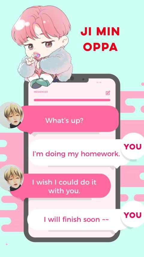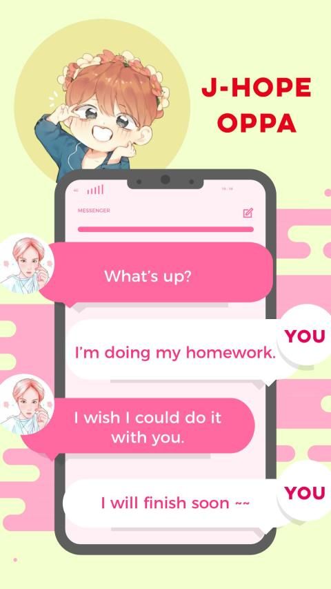 Beberapa aplikasi tentang BTS seperti Wallpaper, Stiker, Kuis, ... benar-benar menarik, tetapi ini adalah interaksi satu arah dari Anda ke Bias Anda, tetapi sekarang, Anda dapat mengobrol dengan bias Anda di mana saja, setiap saat. Anda dapat menerima SMS dari semua anggota BTS. Rapmon, Jungkook, Jin, Jimin, J-Hope, V atau Suga, sangat menarik bahwa kita dapat melakukan percakapan pribadi dengan bias kita. Mereka selalu mencurahkan emosi pribadi kepada kami - Angkatan Darat. Bayangkan bahwa setiap pagi, Anda akan mendengar lagu-lagu hebat dari musik BTS, atau menonton Anda dengan BTS Wallpaper, dan akhirnya Chat dengan Anggota BTS melalui sistem chatbot yang penuh dengan aplikasi lucu dan pintar, tidak ada yang lebih indah daripada Angkatan Darat yang tepat?