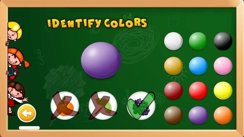 Warna - Balls dengan warna yang berbeda akan ditampilkan. Dan dengan setiap bola warna, tiga gambar dengan warna yang berbeda akan ditampilkan. Balita harus mencentang tanda gambar seperti yang warnanya sesuai dengan warna bola. Ini membantu balita dalam membuat identifikasi warna dan meningkatkan kekuatan menggenggam. Balita menjadi akrab dengan warna yang berbeda dan ini akan membantu di TK juga.