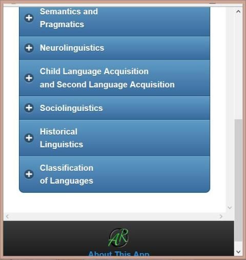Linguistics is the scientific study of language. In our life language is an important aspect. All the development of human society depends on Linguistics. In this app we have described some basic topics of linguistics. These are Phonetics and phonology, Morphology, semantics, pragmatics, second language acquisition method, neurolinguistics, sociolinguistics, history of linguistics, classification of linguistics and many more. The discussion topics of this app are written by experienced linguists. We tried our best to make this app flawless. If any error can be found by the uses they are requested to inform our authority pointing the error portion through our official mail address.