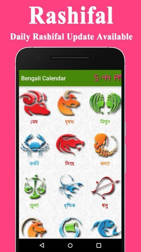 Aplikasi ini juga mencakup Rashifal (Rashi Bhavishya di Bengali) adalah berdasarkan pada prinsip-prinsip Veda Astrologi. “Rashi Bhavishya” memberitahu Anda bagaimana setiap hari akan menjadi bagi Anda dari perspektif yang berbeda seperti cinta, keluarga, keuangan, kesuksesan dan kemakmuran dll . The ramalan bintang harian di Bengali yang diberikan di sini akan membantu Anda mempersiapkan lebih baik untuk hari dan membantu Anda mendapatkan sebagian besar dari itu. Selain harian Bengali horoskop, horoskop tahunan yaitu Rashi Bhavishya 2015-16-17-18 di Bengali juga tersedia di sini untuk semua tanda-tanda zodiak. Anda mungkin membaca horoskop hari kami di Bengali untuk menghindari lubang dan menapak jalan tanpa kesulitan. Hari ini horoskop Bengali yang diberikan di sini disiapkan oleh astrolog cerdik kami untuk memberikan yang terbaik dari saran astrologi setiap hari.