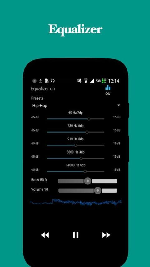 * Equalizer, Visualizer dan efek Meningkatkan Bass.