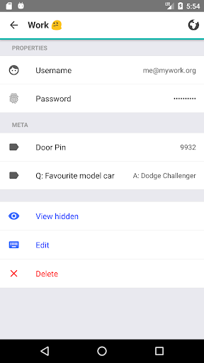 Semua informasi yang disimpan dalam Buttercup Vaults bersifat pribadi dan dienkripsi - hanya tersedia untuk mereka yang memiliki kata sandi utama.Rahasia kata sandi ini dan jangan gunakan untuk login lainnya!Setelah detail login Anda disimpan dalam Buttercup, Anda dapat berkonsentrasi hanya mengingat 1 kata sandi (untuk Buttercup) - semua kata sandi lainnya bisa panjang, teks omong kosong untuk meningkatkan keamanan, dan Anda tidak harus mengingatnya!