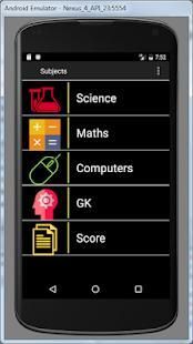 This android app contains tests on various subjects for class 6 students of CBSE syllabus. The subjects include: Maths, Computers, Science, General Knowledge and Social Studies. The Questions are multiple choice type with only one correct answer. With more than 10000+ questions, this app will help the students to test their knowledge on the subject and prepare for their exams.