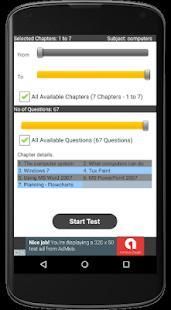 Students can select a Subject and the range of chapters on which he/she want to take the test. The student can also decide whether he want to attempt all the available questions (on the selected range of chapters) or a fewer number of questions only.