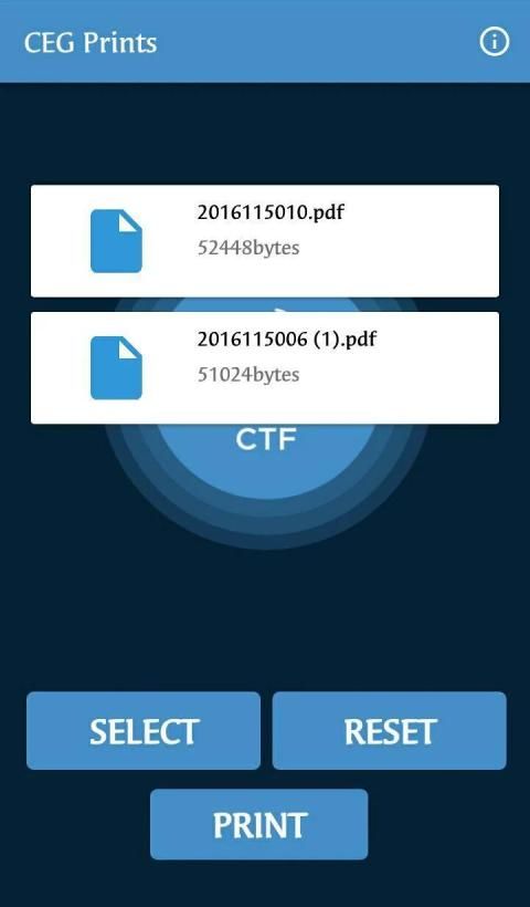- Gunakan aplikasi "CEG Prints" dan pilih File dari telepon Anda untuk mencetak dan klik ‘PRINT’.